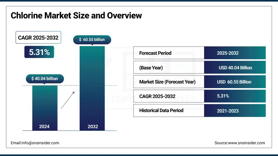 The Chlorine market size was valued at USD 40.04 billion in 2024 and is expected to reach USD 60.55 billion by 2032, growing at a CAGR of 5.31% over the forecast period of 2025-2032.
