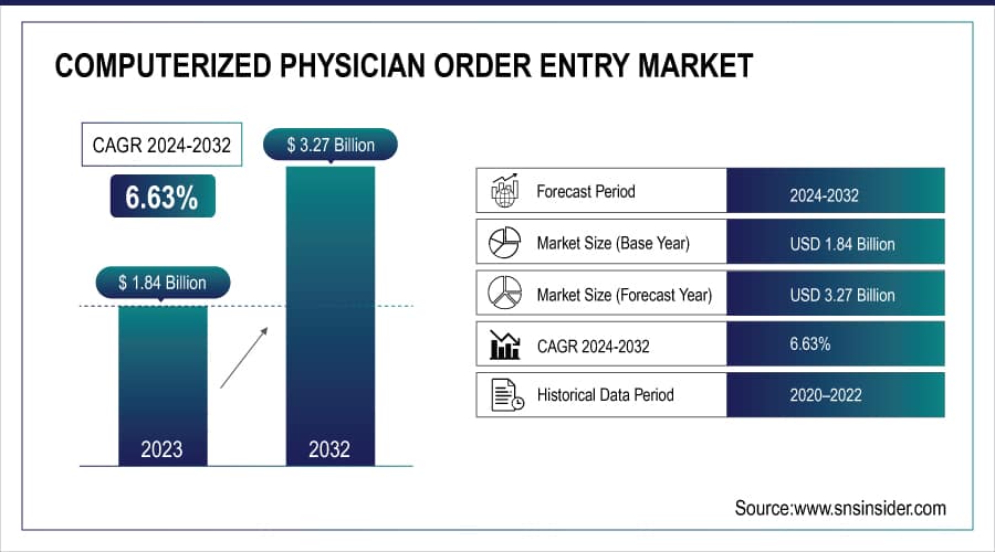 The Computerized Physician Order Entry Market size was valued at USD 1.84 billion in 2023 and is expected to grow to USD 3.27 billion by 2032 and grow at a CAGR of 6.63% over the forecast period of 2024-2032.