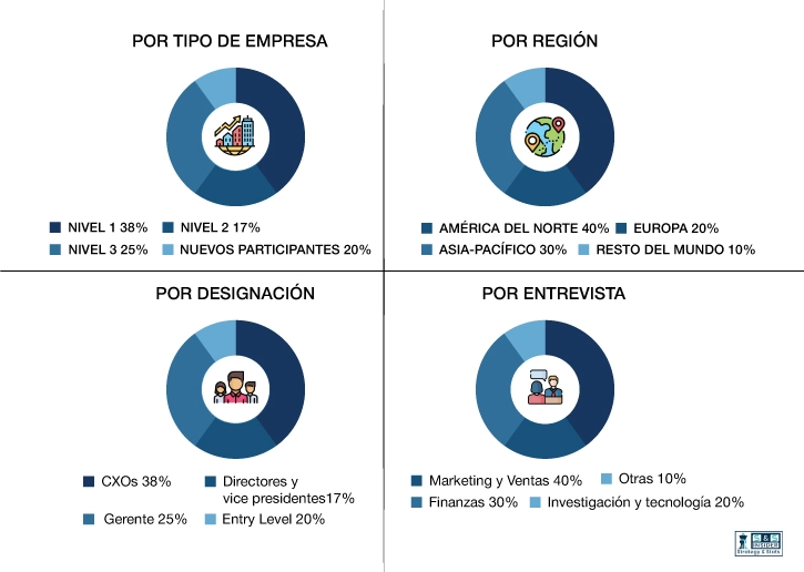 En la primera parte, entrevistamos a líderes de opinión clave (KOL) de las principales empresas y de los actores emergentes en distintas regiones geográficas. Esto nos permite comprender su visión del mercado y acercarnos a cifras de mercado más precisas. Se realizan aproximadamente 45 entrevistas primarias, tanto del lado de la oferta como de la demanda, para garantizar un análisis y una evaluación precisos del mercado.