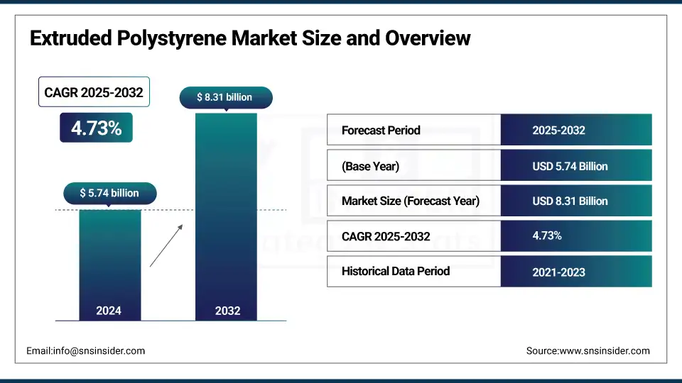 The Extruded Polystyrene Market Size was valued at USD 5.74 billion in 2024 and is expected to reach USD 8.31 billion by 2032, growing at a CAGR of 4.73% over the forecast period of 2025-2032.