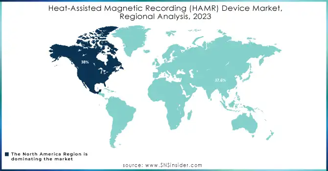 North America dominated in 2023 with a 38% market share due to several factors, including the strong presence of key players like Western Digital, Seagate Technology, and Hewlett Packard Enterprises in the region. North America is known for its advanced technological infrastructure, substantial R&D investments, and leading-edge developments in storage technologies. Companies like Seagate and Western Digital are heavily involved in the development and deployment of HAMR devices to meet the growing demand for high-capacity, high-performance storage solutions, particularly in sectors like cloud computing, big data analytics, and AI applications.