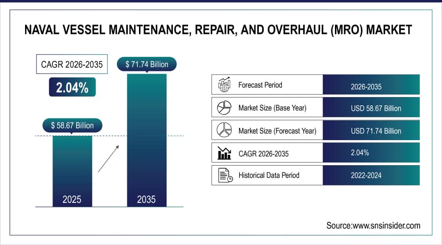 The Naval Vessel Maintenance, Repair, and Overhaul (MRO) market was valued at USD 58.67 billion in 2025 and is expected to reach USD 71.74 billion by 2035, registering a CAGR of 2.04% from 2026 to 2035.