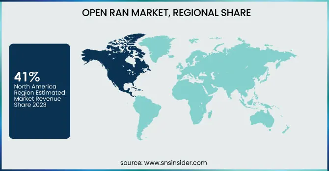 North America dominated the market and accounted for 41% of revenue share in 2023. Several factors are responsible for the regional growth, such as the presence of key players like AT&T, Inc., and also the high inclination toward technology in the region, thereby, making the region an early adopter of advanced solutions. Additionally, the region is witnessing heavy investments in telecommunication infrastructure creating ample growth opportunities for the adoption of O-RAN.