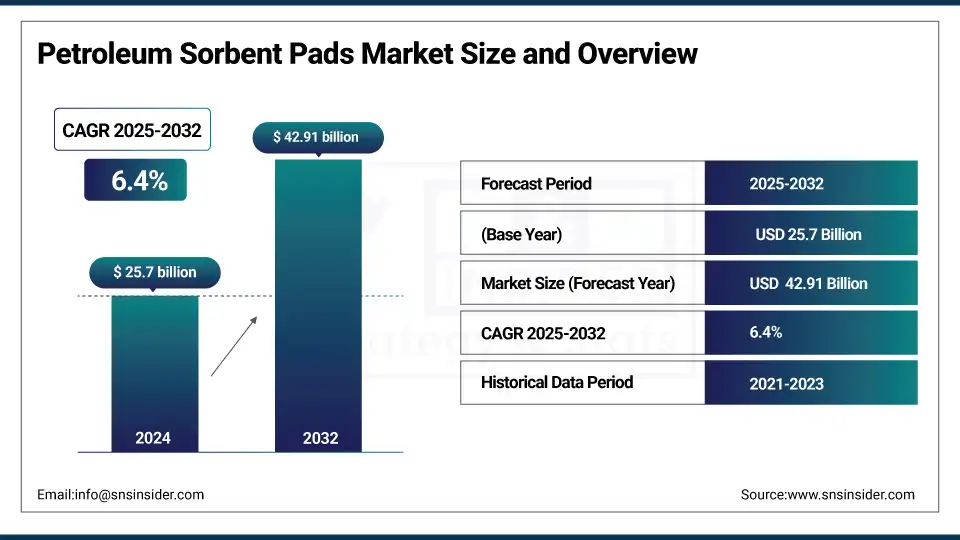 The Petroleum Sorbent Pads market size was valued at USD 25.7 billion in 2024 and is expected to reach USD 42.91 billion by 2032, growing at a CAGR of 6.4% over the forecast period of 2025-2032.