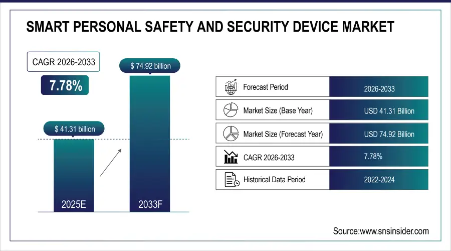 The Smart Personal Safety and Security Device Market size was valued at USD 41.31 billion in 2024 and is expected to reach USD 74.92 billion by 2032, growing at a CAGR of 7.78% over the forecast period of 2025-2032.